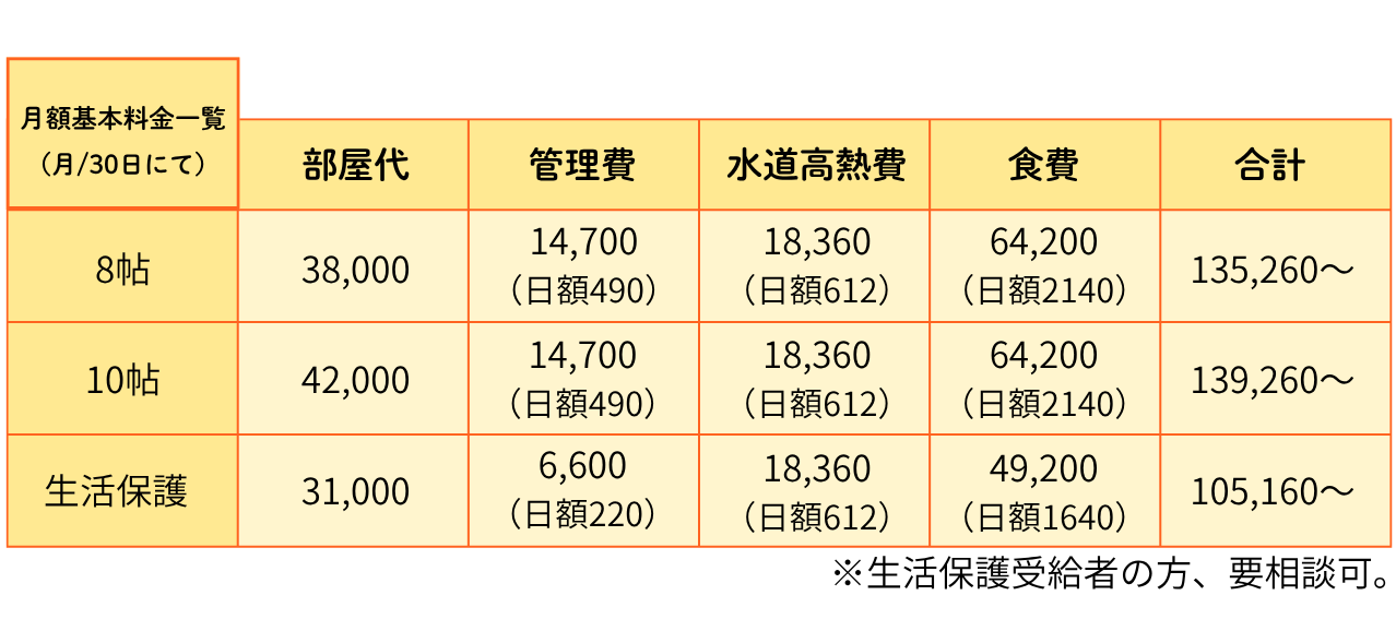 お一人ずつお部屋を借りて頂き、それぞれの介護度に応じた料金が合計金額になります。